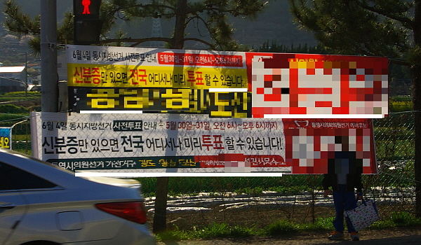 ½Ã´Â °øÁ÷¼±°Å¹ý¿¡ µû¸¥ ÅõÇ¥Âü¿©¸¦ ±ÇÀ¯ÇÏ´Â Çö¼ö¸·À̶ó ÇÒÁö¶óµµ ¡®¿Á¿Ü±¤°í¹° µî °ü¸®¹ý¿¡ µû¶ó ±¤°í¹° µîÀÇ Ç¥½Ã°¡ ±ÝÁöµÇ´Â °¡·Î¼ö, Àüº¿´ë, °¡·Îµî, µµ·Î ºÐ¸®´ë µî¿¡´Â ¼³Ä¡ÇÒ ¼ö ¾ø´Ù¡¯´Â ¾ÈÀüÇàÁ¤ºÎÀÇ Ä¡Ä§¿¡ µû¶ó ö°ÅÇϱâ·Î Çß´Ù.