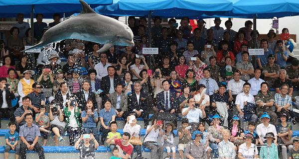 ¿ÀÇÂÇà»ç Âü¼®ÀÚµéÀÌ µ¹°í·¡ ¼î¸¦ °ü¶÷Çϰí ÀÖ´Ù.