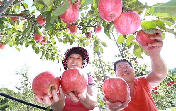 Ãß¼®À» ÀÏÁÖÀÏ ¾ÕµÐ 1ÀÏ °æ³² ÇԾ籺 ¼ÇÏ¸é ¿ùÆò±æ »ç°ú³óÀå¿¡¼ ±è³²Èñ(55)¾¾ ºÎºÎ°¡ ޽º·´°Ô Àß ÀÍÀº Á¶»ýÁ¾ »ç°ú¸¦ ¼öÈ®Çϰí ÀÖ´Ù.