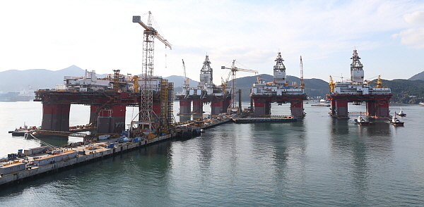 ´ë¿ìÁ¶¼±Çؾç(»çÀå °íÀçÈ£)ÀÌ ÃÊ´ëÇü ¹ÝÀá¼ö½Ä ½ÃÃß¼±(Semi-submersible rig) 4ôÀ» µ¿½Ã¿¡ ¸í¸íÇØ ¡®¼¼°è ÃÖÃÊ ¹ÝÀá¼ö½Ä ½ÃÃß¼± µ¿½Ã ¸í¸í½Ä¡¯ ±â·ÏÀ» ¼ö¸³Çß´Ù.