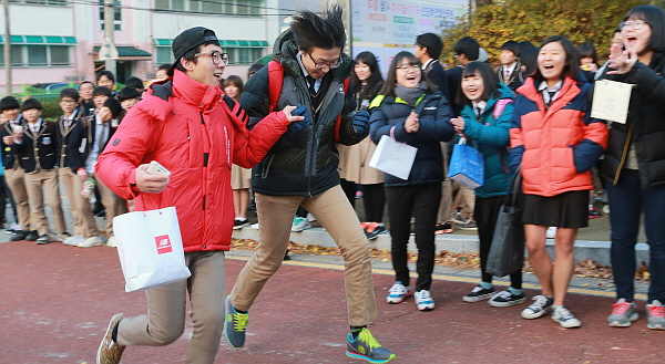 Á¤¹®¾Õ¿¡¼´Â °¢ ÈĹèµéÀÌ ³ª¿Í ¼öÇè»ý ¼±¹èµéÀ» ÀÀ¿øÇϰí ÀÖ´Ù.