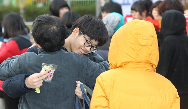 À̳¯ ¿ÀÀü °æ³² ÇԾ籺 ÇÔ¾çÁ¦ÀϰíµîÇб³ Á¤¹®¿¡¼ ÇÑ ¼öÇè»ýÀÌ ¼±»ý´ÔÀÇ Æ÷¿ËÀ» ¹Þ°í ÀÖ´Ù.