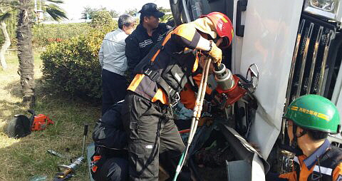 »ç°í°¡ ³ªÀÚ °ÅÁ¦¼Ò¹æ¼´Â ±¸±ÞÂ÷ µî 4´ëÀÇ Àåºñ¸¦ µ¿¿ø 12¸íÀÇ ´ë¿øÀÌ ±¸Á¶ÀÛ¾÷À» ¹ú¿´´Ù.
