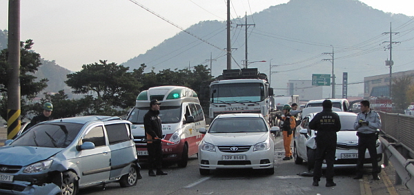 À̳¯ »ç°í´Â ¿ÁÆ÷¿¡¼ °íÇö¹æ¸éÀ¸·Î ¿îÇà ÁßÀÌ´ø Æ÷ÅÍÂ÷·®ÀÌ 1Â÷¼±¿¡¼ 2Â÷¼±À¸·Î Â÷¼±À» º¯°æÇÏ·Á´Ù ¾Õ¼°¡´ø Â÷·®µé°ú ÀÕµû¶ó Ãßµ¹ÇÑ °ÍÀ¸·Î ¾Ë·ÁÁ³´Ù.
