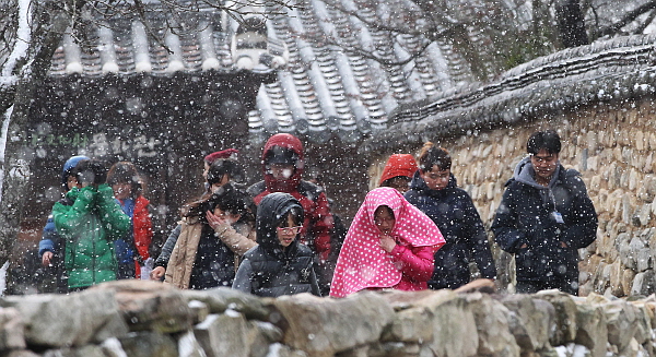 ÇÑ¿Á¸¶À»À» ãÀº °ü±¤°´µéÀº ¸Å¼¿î °Ü¿ïÃßÀ§¿¡ ¹«¸´ã¿ä¸¦ ¸Ó¸®¿¡ µÎ¸£°í Á¾Á¾°ÉÀ½ Ä¡°í ÀÖ´Ù.