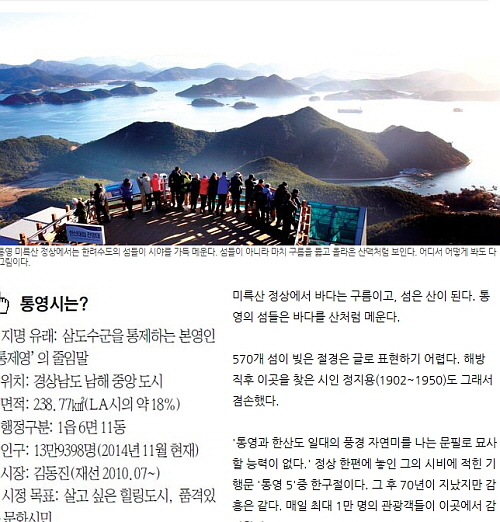 200¸¸ ¹Ì±¹ ÇÑÀε鿡°Ô Å뿵 ÀÇ °ü±¤Áö, ¹®È, ¸Ô°Å¸®¸¦ ¼Ò°³ÇÑ ±â»ç°¡ Áö³´Þ 23ÀÏ ¹ÌÁÖ Áß¾ÓÀϺ¸¿¡ ½Ç·È´Ù.