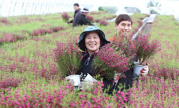 2ÀÏ ³²´öÀ¯»ê ÀÚ¶ôÀÎ °æ³² ÇԾ籺 ¼»ó¸é ´ë³²¸® ±èÁÖÈ£(63)¾¾ ÈÈÑ ºñ´ÒÇϿ콺¿¡¼ ³ó¹ÎµéÀÌ ºê·Î´Ï¾Æ²ÉÀ» ¼öÈ®Çϰí ÀÖ´Ù.