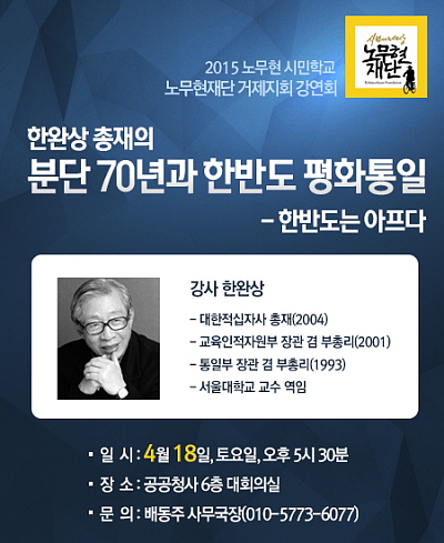¡®À§±â, ´ëÇѹα¹À» ¸»ÇÏ´Ù¡¯ÀÇ 1°Àº ÀÌÁ¤È£ (Àü)½Ã¹Î»çȸ¼ö¼®ÀÇ ¡®À§±âÀÇ ´ëÇѹα¹ ±×¸®°í ³ë¹«Çö¡¯À̶ó´Â °¿¬À¸·Î Áö³ 3¿ù 25ÀÏ ¾ç»ê½Ã¿¡¼ ÁøÇàµÇ¾úÀ¸¸ç, 2°Àº Çѿϻó ºÎÃÑÀçÀÇ ¡®ºÐ´Ü 70³â°ú Çѹݵµ ÆòÈÅëÀÏ¡¯À̶ó´Â Á¦¸ñÀ¸·Î °ÅÁ¦¿¡¼ ÁøÇàµÉ ¿¹Á¤ÀÌ´Ù.