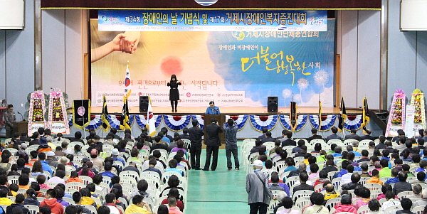 °ÅÁ¦½ÃÀå¾ÖÀδÜüÃÑ¿¬ÇÕȸ(ȸÀå ¼Õº¹½Ä) ÁÖ°üÇÏ´Â ¡®Á¦35ȸ Àå¾ÖÀÎÀÇ ³¯ Çà»ç¡¯ °¡ ¿À´Â 20ÀÏ ¿ù¿äÀÏ ¿ÀÀü 11½ÃºÎÅÍ °ÅÁ¦½ÃüÀ°°ü¿¡¼ °³ÃֵȴÙ.
