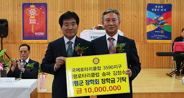 [ÀÇ·É/ ÀӰ濱 ±âÀÚ] ±¹Á¦·ÎŸ¸® 3590Áö±¸ ÃÑÀç Áö¿ª´ëÇ¥ÀÎ ¼ÛÆÄ ±èÁ¤¼ö(ÀǷɷΟ¸®Å¬·´)°¡ 2ÀÏ °æ³² ÀǷɱº ÀåÇÐȸ¿¡ 1000¸¸¿øÀÇ ÀåÇбÝÀ» ±âŹÇß´Ù.