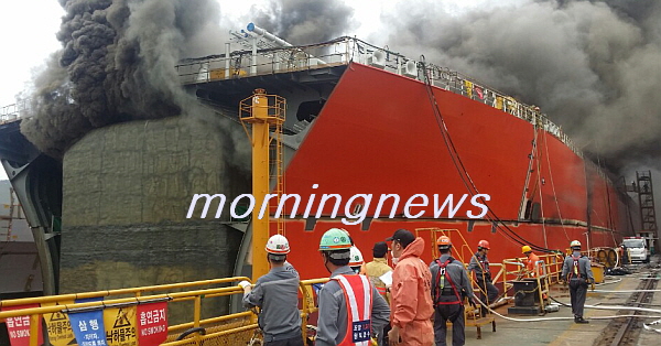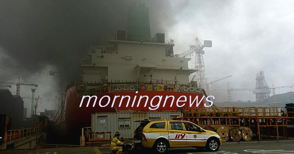 24ÀÏ ¿ÀÀü 9½Ã44ºÐ²² °æ³² °ÅÁ¦½Ã ¾ÆÁÖµ¿ ´ë¿ìÁ¶¼±Çؾ翡¼ °ÇÁ¶ÁßÀÎ 15¸¸Åæ±Þ LPG ¼±¹Ú¿¡¼ ÈÀç°¡ ¹ß»ýÇß´Ù.