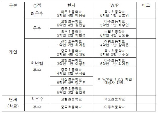 ´Üü ÃÖ¿ì¼ö±³´Â ÇÑÀںι® °íÇöÃʵîÇб³, ¿öµåºÎ¹® ¿ÁÆ÷ÃʵîÇб³°¡ °¢°¢ ¼ö»óÇß´Ù.
