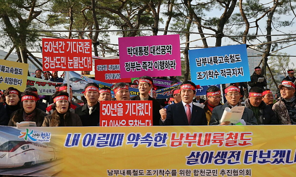 ÃßÁøÇùÀÇȸ´Â Áýȸ¿¡¼ ³²ºÎ³»·úöµµ Á¶±â°Ç¼³ Ã˱¸ ¼º¸í¼¸¦ ¹ßÇ¥ÇÏ°í ºñ¿ëÆíÀͺм®(B/C) ¶§ ¼¿ï~±èõ ÆíÀÍÀ» 100% ¹Ý¿µÇϰí Á¤ºÎ´Â °æÁ¦¼º¸¸ µûÁöÁö ¸»°í ³«ÈÄµÈ ³²ºÎ³»·ú Áö¿ª¹ßÀüÀ» À§ÇØ ³²ºÎ³»·úöµµ¸¦ Á¶±â¿¡ °Ç¼³ÇØ¾ß ÇÑ´Ù°í ÁÖÀåÇÏ¸é¼ ÀÌ·± ¿ä±¸°¡ °üöµÉ ¶§±îÁö ÃÑ·Â ÅõÀïÇÒ °ÍÀ» °áÀÇÇß´Ù.