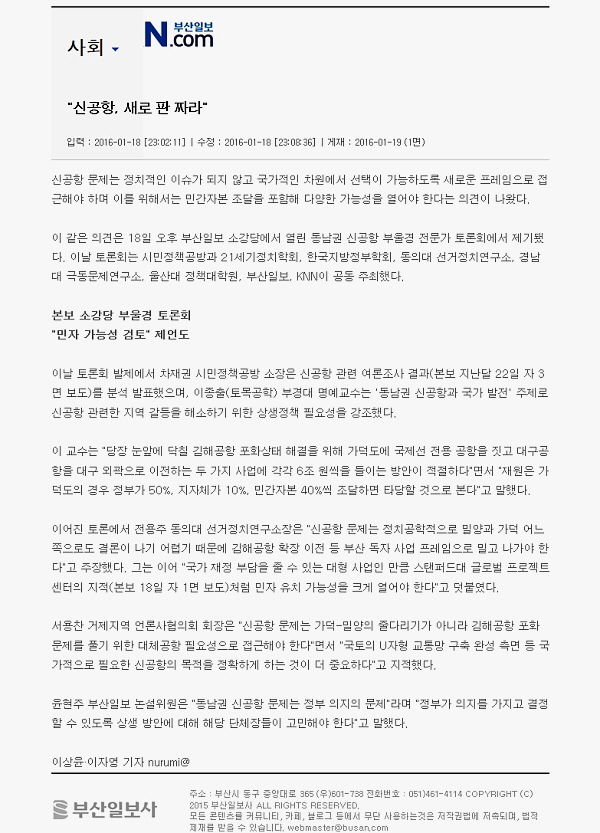 °¡´öµµ ½Å°øÇ×Àº ºÎ»ê-¹Ð¾çÀÇ ÀÔÁö´ë°á ±¸µµ°¡ ¾Æ´Ï¶ó Æ÷È »óÅ¿¡ À̸¦ °ÍÀ¸·Î ¿¹»óµÇ´Â ±èÇØ°øÇ×ÀÇ È®Àå ÀÌÀüÀÌ ÇÊ¿äÇÒ °ÍÀ̶ó´Â ´çÃÊ ³í¸®·Î ºÎ»ê¸¸ÀÇ ÇÁ·¹ÀÓÀ» Â¥¾ß ÇÑ´Ù´Â ¸ñ¼Ò¸®°¡ ³ô¾Ò´Ù.