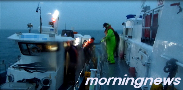 BÈ£ ¼±ÀåÀÇ Ç¥·ù ½Å°í¸¦ ¹Þ°í 100Åæ±Þ °æºñÁ¤À» »ç°íÇØ¿ªÀ¸·Î ±ÞÆÄÇÑ ÇØ°æÀº ³¬½Ã°´ 3¸íÀ» ¾ÈÀüÇÏ°Ô °æºñÁ¤À¸·Î ¿Å°Ü Å¿ì°í BÈ£´Â ÁøÇØ ¿ìµµ ±Ùó ¼ö¿ªÀ¸·Î ¿¹ÀÎÇß´Ù.