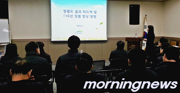 K-water °ÅÁ¦±Ç°ü¸®´Ü(´ÜÀå ÃÖÈ«¹¬)Àº 16ÀÏ Ã»·ÅÀ±¸®°ü¸®Ã¼ Ȱµ¿ÀÇ ÀÏȯÀ¸·Î Àü Á÷¿øÀÌ Âü¼®ÇÑ °¡¿îµ¥ û·Å±³À° ¹× °£´ãȸ¸¦ °®°í û·Å¹®È Á¶¼ºÀ» À§ÇØ ³ë·ÂÇÒ °ÍÀ» ´ÙÁüÇß´Ù.