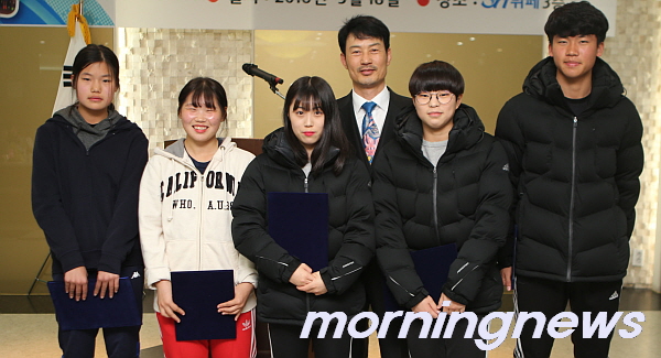 À̾î ÀåÇлý À°¼º µî ±âºÎ¿¡ Èû½á¿Â ±èȯÁß È¸ÀåÀÇ °ø·Î¸¦ ÀÎÁõÇÏ´Â ÃëÁö¿¡¼ °æ³²À°»ó°æ±â¿¬¸Í ±è±âÁø ºÎȸÀåÀÇ ±âºÎÁõ¼(2500¸¸ ¿ø)°¡ Àü´ÞµÆ´Ù. Çлý ¼±¼ö 5¸í(ÀåÆòÃÊ ¼Û¿¹¶û, °ÅÁ¦Áß Á¤ÁøÈñ, Á¦ÀÏ°í ¹Ú¼Èñ, À±Á¤Çö, ½É¼öÁø)¿¡°Ô´Â ¸Å¿ù 20¸¸ ¿ø¾¿ 1³â°£ ÀåÇÐ±Ý 240¸¸ ¿ø(ÃÑ 1200¸¸ ¿ø)À» Áö±ÞŰ·Î Çϰí Áõ¼°¡ ¼ö¿©µÆ´Ù.