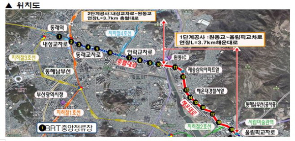 ºÎ»ê½Ã´Â 3¿ù 23ÀϺÎÅÍ ÇØ¿î´ë·Î ¿øµ¿IC¿¡¼ºÎÅÍ ¿Ã¸²Çȱ³Â÷·Î±îÁö 3,700m±¸°£¿¡ ´ëÇØ Áß¾Ó¹ö½ºÀü¿ëÂ÷·Î ¼³Ä¡ °ø»ç¸¦ º»°ÝÈÇÑ´Ù°í 22ÀÏ ¹àÇû´Ù.