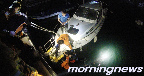 ½Å°í¸¦ ¹Þ°í Ã⵿ÇÑ °ÅÁ¦¼Ò¹æ¼ ±¸Á¶´ë´Â ¼±¹Ú¿¡ ¿¬°áµÈ Á¤¹Ú¿ë ¹åÁÙ¿¡ ¸Å´Þ·Á ÀÖ´Â A¾¾¿¡°Ô ÀÎ¸í±¸Á¶¿ë ·¹½ºÅ¥ Æ©ºê¸¦ Âø¿ë½ÃŰ°í ¾ÈÀüÇÏ°Ô ±¸Á¶Çß´Ù.