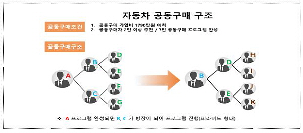 ÃÖÃÊȸ¿øÀº °¡ÀÔºñ 1790¸¸¿øÀ» ³»°í ÁöÀÎ 2¸íÀ» ¸ðÁýÇϸé, À̵鵵 °¢ 2¸í¾¿ ȸ¿øÀ» ¸ðÁýÇØ °¡ÀÔÀÚ°¡ 7¸íÀÌ µÇ¸é ÃÖÃÊ °¡ÀÔÀÚ°¡ 6800¸¸¿ø »ó´çÀÇ º¥Ã÷ Â÷·® ¶Ç´Â Çö±Ý 5500¸¸¿øÀ» °¡Á® °¡´Â ¹æ½Ä(ÇǶó¹Ìµå¹æ½Ä) À¸·Î Àü±¹¿¡ °ÉÃÄ È¸¿øÀ» ¸ðÁýÇß´Ù.