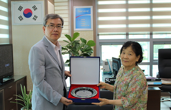 ³ë¿ø±Ù °æ³²µ¿ºÎº¸ÈÆÁöûÀåÀÌ ¾Ö±¹Áö»çÀÇ ÈļÕÀÎ À̵µÇÊ ¿©»ç¿¡°Ô °¨»çÆÐ¸¦ Àü´ÞÇϰí ÀÖ´Ù. À̵µÇÊ ¿©»ç´Â ¾î·Á¿î °æÁ¦¿©°Ç¿¡µµ 5000¸¸¿øÀÇ ÀåÇбÝÀ» ±âÅ¹ÇØ ¾Ö±¹Áö»çÀÇ ÈļÕÀ¸·Î ±¹¹Îµé¿¡°Ô ³ª¶ó»ç¶ûÁ¤½Å ÇԾ翡 ±â¿©Çß´Ù.