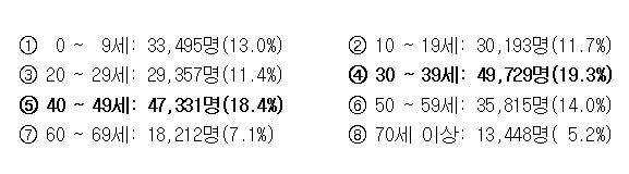 °ÅÁ¦½ÃÀÇ Æò±Õ¿¬·ÉÀº 36.05¼¼À̸ç, ¿¬·Éº° ºÐÆ÷´Â 30~40´ë Àα¸°¡ 9¸¸7060¸í(37.7%)À¸·Î °¡Àå ¸¹¾Ò´Ù.
