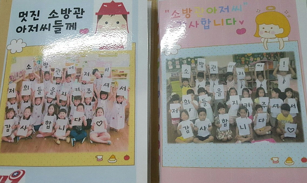 À̳¯ ¼ÅøÁö¸¸ ²¿ºÒ²¿ºÒ ½á³»·Á°£ ±Û°ú ÇÔ²² º¸³»¿Â ±×¸²ÆíÁö¿¡´Â¡°¼Ò¹æ°ü ¾ÆÀú¾¾ °¨»çÇÕ´Ï´Ù¡±, ¡°¼Ò¹æ°ü ¾ÆÀú¾¾ ÇູÇϼ¼¿ä¡±, ¡°¼Ò¹æ°ü ¾ÆÀú¾¾ ÀúÈñµéÀ» ÁöÄÑÁּż °¨»çÇÕ´Ï´Ù¡± µî ¾î¸°À̵éÀÇ ¼ø¼öÇÏ°í µû¶æÇÑ ¸¶À½ÀÌ ´ã°ÜÁ® ÀÖ¾ú´Ù.