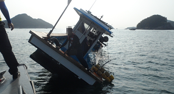 ¾ÏÃÊ¿¡ ÁÂÃʵŠ¹è°¡ ħ¼öµÇ°í ÀÖ´Ù´Â ¼±ÀåÀÇ ±¸Á¶½Å°í¸¦ ¹ÞÀº Åë¿µÇØ°æÀº °æºñÇÔÁ¤°ú ¾ÈÀü¼¾ÅÍ ¼øÂûÁ¤, ¹Î°£ÀÚÀ²±¸Á¶¼±µîÀ» µ¿¿øÇØ ¹«»çÈ÷ ±¸Á¶Çß´Ù.