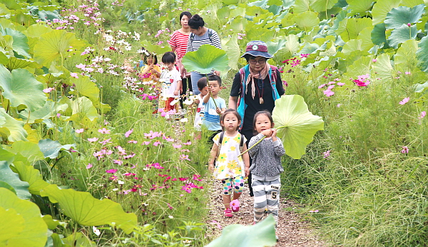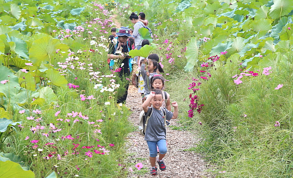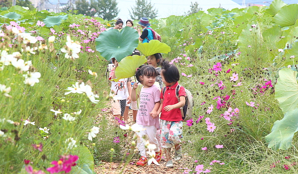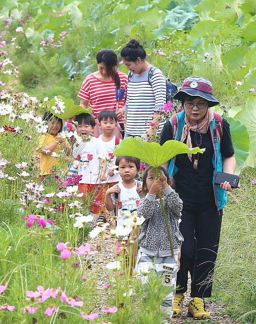 ¸·¹ÙÁö Æø¿°ÀÌ ±â½ÂÀ» ºÎ¸®´Â 24ÀÏ °æ³² ÇԾ籺 »ó¸²¿¬²É´ÜÁö¿¡ ³ªµéÀÌ ³ª¿Â ¾î¸°À̵éÀÌ ¿¬ÀÙ ¿ì»êÀ» ¹ÞÃÄ µé°í ÄÚ½º¸ð½º±æÀ» °È°í ÀÖ´Ù.