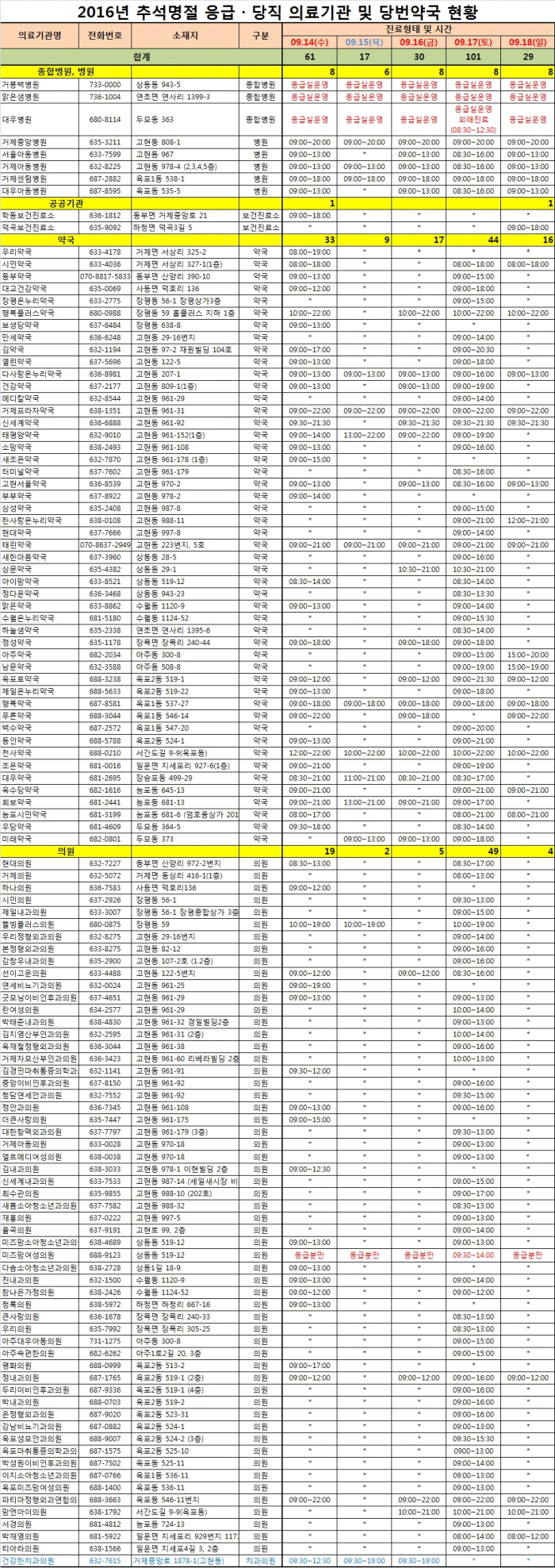 °ÅÁ¦½Ã°¡ Ãß¼®¿¬ÈޱⰣ(9¿ù14ÀÏ~9¿ù 18ÀÏ) ÀÀ±Þ.´çÁ÷ ÀÇ·á±â°ü ¹× ´ç¹ø¾à±¹À» ¿î¿µÇÑ´Ù.