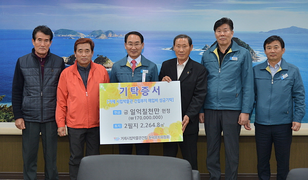 ÇÑÆí °ÅÁ¦½Ã¸³¹Ú¹°°ü °Ç¸³ µÐ´öÀ¯Ä¡À§¿øÈ¸(ÀÌÇÏ À¯Ä¡À§¿øÈ¸) ±è¿µÃ¶ À§¿øÀå ¿Ü 3¸íÀº ¹Ú¹°°ü °Ç¸³¿¡ º¸ÅÆÀÌ µÇ±â¸¦ ¹Ù¶õ´Ù¸ç ¼º±ÝÀ¸·Î Çö±Ý 1¾ï 7000¸¸ ¿ø°ú ½Ã°¡ 3¾ï 2000¸¸ ¿ø »ó´çÀÇ ÅäÁö 2ÇÊÁö¸¦ 16ÀÏ °ÅÁ¦½Ã¿¡ ±âŹÇß´Ù.