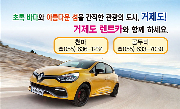 ´ëÁß±³Åë¼ö´ÜÀ» ÀÌ¿ëÇÏ´Â °ü±¤°´À» À§ÇÏ¿© ¾ðÁ¦, ¾îµð¼³ª, ½Ç½Ã°£ ·»Æ®Ä« »ó´ã ¹× ¿¹¾àÀÌ °¡´ÉÇÑ ÀÎÅÍ³Ý »çÀÌÆ®ÀÎ ¡®°ÅÁ¦µµ ·»Æ®Ä«(www.geojedorent.co.kr)¡¯¸¦ °³¼³Çß´Ù.