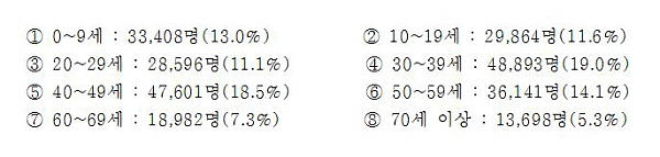 ¿¬·Éº° ºÐÆ÷´Â 30~40´ë Àα¸°¡ 9¸¸6494¸í(37.52%)À¸·Î °¡Àå ¸¹¾ÒÀ¸³ª, Àü³â ´ëºñ ÀþÀºÃþ(20~40¼¼)Àº ÁÙ¾îµé¾ú°í ³ë³âÃþÀÎ 50´ë ÀÌ»óÀº ´ëÆø »ó½ÂÇÑ °ÍÀ¸·Î ³ªÅ¸³ª Á¡Â÷ÀûÀ¸·Î °í·Éȵǰí ÀÖÀ½À» ³ªÅ¸³»°í ÀÖ´Ù.