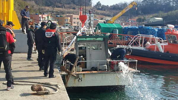 ½Å°í¸¦ ¹ÞÀº Åë¿µÇØ°æÀº °æºñÇÔÁ¤°ú ÇØ°æ±¸Á¶´ë¸¦ Áï½Ã ÇöÀåÀ¸·Î ±ÞÆÄÇßÀ¸¸ç, ÇöÀå¿¡ µµÂøÇÑ °æºñÇÔÁ¤Àº ¸ÕÀú ³¬½Ã°´À» ¾ÈÀüÇÏ°Ô ¿Å°Ü Å¿î ÈÄ »ç°í¼±¹ÚÀ¸·Î À¯ÀÔµÈ ¹Ù´å¹°À» ¹èÃâÀÛ¾÷À» ÇÏ¸é¼ °æºñÁ¤À¸·Î ¿¹ÀÎ, ¾ÈÀüÇÑ ¼±ÂøÀåÀ¸·Î ¹«»çÈ÷ ÀÔÇ×½ÃÄ×´Ù.