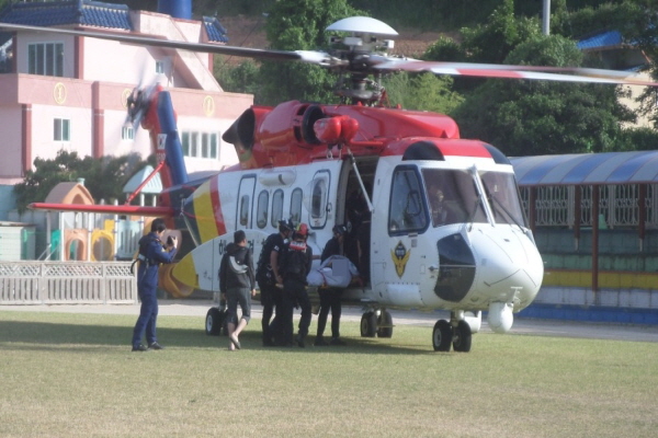 Áö³ 2¿ù 27ÀÏ Å뿵 ¿åÁöµµ µÎ¹Ìµµ ³²¹æ¿¡¼ Á¶¾÷ Áß Å©·¹ÀÎ ºÕ´ë¿¡ ±ò·Á Å« ºÎ»óÀ» ÀÔÀº J(42)¾¾¸¦ Çï±â¸¦ ÀÌ¿ëÇØ ±ä±Þ À̼ÛÇÏ´Â µî ¼±¹Ú ÀÀ±ÞȯÀÚ 12¸íÀ» ±ä±Þ ±¸Á¶Çß´Ù.