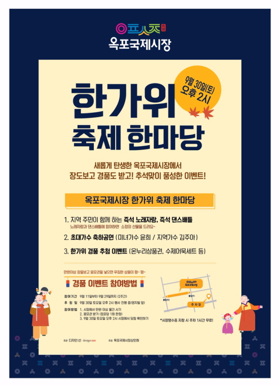 ¾Æ¿ï·¯, 30ÀÏ ¿ÀÈÄ 2½Ã ¡®¿ÁÆ÷±¹Á¦½ÃÀå ÇѰ¡À§ ÃàÁ¦ ÇѸ¶´ç¡¯À» °³ÃÖÇØ °æÇ° Ãß÷ Çà»ç, Áï¼® ³ë·¡ÀÚ¶û, ´í½º¹èƲ µî ´Ùä·Î¿î Çà»ç¸¦ ÁøÇàÇϸç, ÃÊ´ë°¡¼öÀÇ °ø¿¬À» ÅëÇØ Ãß¼® ÀüÅë½ÃÀå¿¡ Èï°Ü¿òÀ» ºÒ¾î³ÖÀ» ¿¹Á¤ÀÌ´Ù.