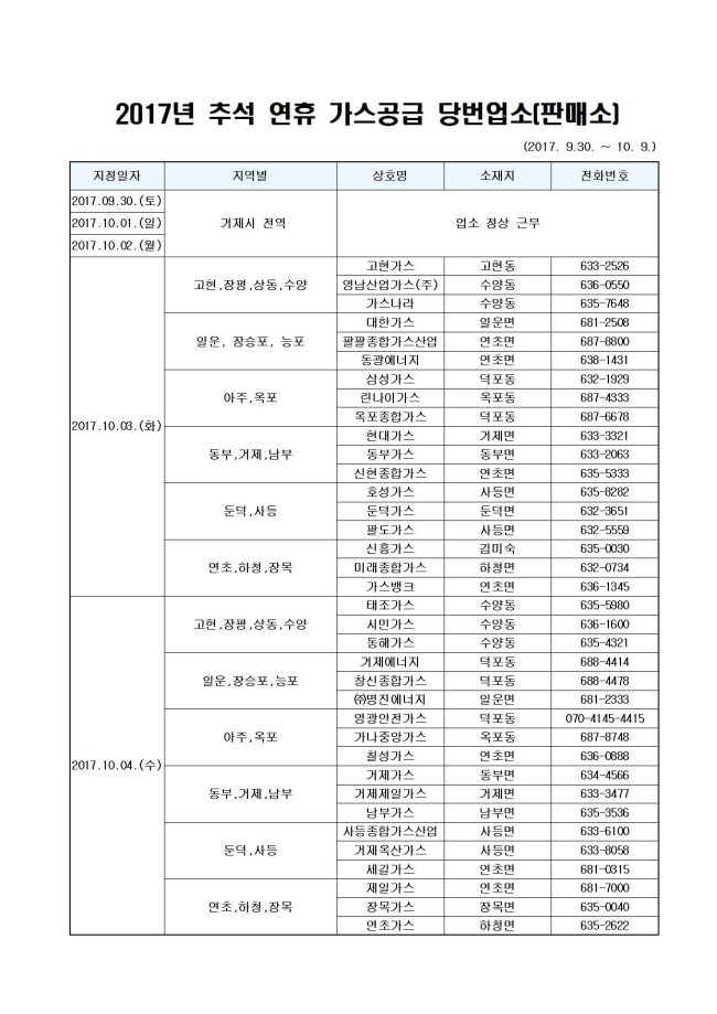 °ÅÁ¦½Ã´Â ÀÌ ±â°£ °¡½º°ø±Þ ´ç¹ø¾÷¼Ò(ÆÇ¸Å¼Ò)¸¦ ÁöÁ¤ÇØ ¿¬ÈÞµ¿¾È ½Ã¹ÎµéÀÌ ºÒÆíÀ» °ÞÁö ¾Êµµ·Ï Çß´Ù.