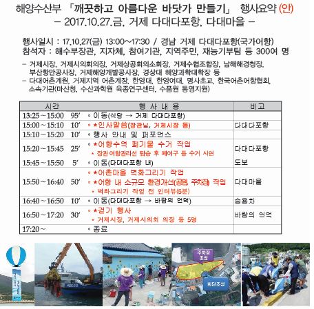 ÁÖ¿äÇà»ç·Î´Â ¾îÇ×¼ö¿ª Æó±â¹° ¼ö°Å, ¾îÃ̸¶À» º®È±×¸®±â Áö¿ø, ¾îÇ׳» ¼Ò±Ô¸ð ȯ°æ°³¼±, ¹Ù¶÷ÀÇ ¾ð´ö °È±âÇà»ç µîÀÌ´Ù.