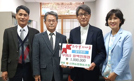 ½ÅÇö³óÇù(Á¶ÇÕÀå Áö¿µ¹è)Àº 12¿ù30ÀÏ ¿¬¸»¿¬½Ã¸¦ ¸Â¾Æ ¡°¾î·Á¿î ȯÀÚ¸¦ À§ÇØ ½á ´Þ¶ó¡°¸ç °ÅÁ¦¹éº´¿ø, ´ë¿ìº´¿ø, ¸¼Àº»ùº´¿øÀ» ¹æ¹®, °¢ 100¿ø¾¿ 300¸¸¿øÀ» Àü´ÞÇß´Ù.