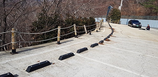 ±×·¯³ª ¸ñÀç Ææ½º°¡ ÆÄ¼ÕµÅ ÀÖ¾î ÀÌ ÁÖÂ÷Àå(³ôÀÌ 3~4m) À̿밴µéÀÌ ±â´î °æ¿ì Ãß¶ô»ç°í°¡ ¿ì·ÁµÈ´Ù.