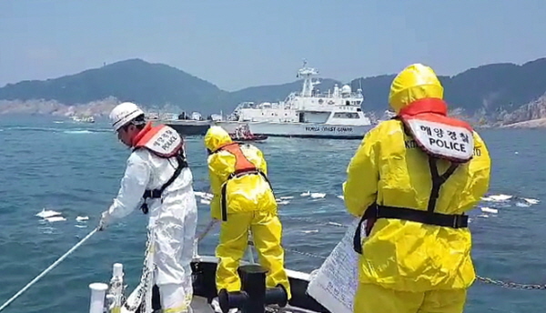 ÇöÀå¿¡´Â °æºñÇÔÁ¤ÀÌ ÁßÁúÀ¯ºÎÂøÁ¦, À¯ÈíÂøÁ¦ µî ¹æÁ¦±âÀÚÀ縦 µ¿¿ø À̳¯ ¿ÀÈÄ ÇØ»ó¹æÁ¦¸¦ ¸¶¹«¸®Çß´Ù.