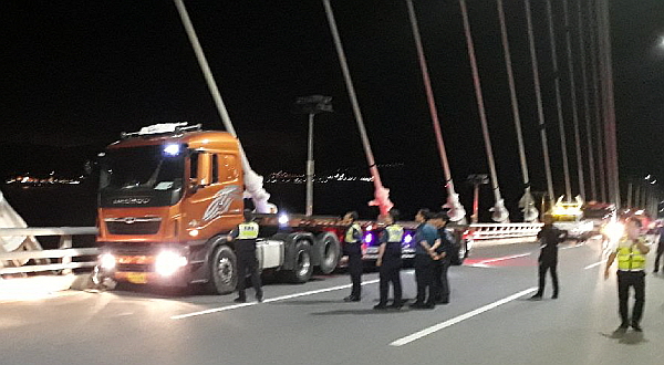 | °æÂû°ú ´ëÄ¡ÁßÀÎ Æ®·¹ÀÏ·¯ ¿îÀüÀÚ. <»çÁø / °Å»ç¸ð> |