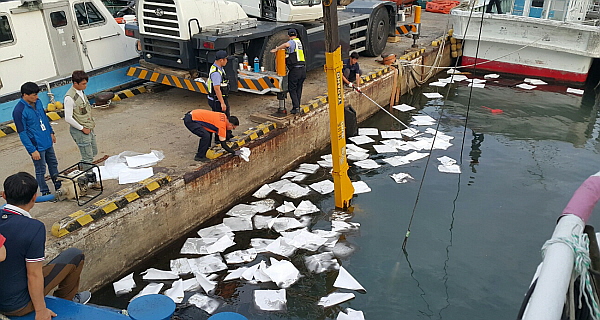 »ç°í¼±¹ÚÀÇ ÀθíÇÇÇØ´Â ¾øÀ¸¸ç ħ¸ô¼±¹Ú ÁÖº¯¿¡ ¿¯Àº ±â¸§¶ì°¡ ÀÖ¾î ¹æÁ¦ÀÛ¾÷À» ¹ú¿´´Ù. ÇØ°æ±¸Á¶´ë´Â ÀûÀçµÈ ±â¸§ÀÌ Èê·¯³ª¿ÀÁö ¾Êµµ·Ï ¿¡¾î¹êÆ®¸¦ ºÀ¼âÇß´Ù.