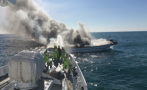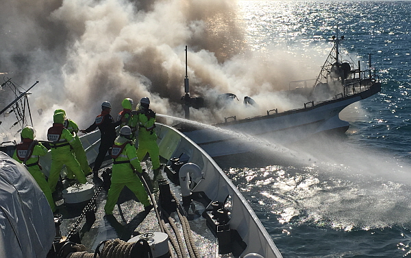 °ðÀÌ¾î µµÂøÇÑ Åë¿µÇØ°æ °æºñÇÔÁ¤¿¡¼ ¼ÒÈÆ÷¸¦ »ç¿ëÇØ ÈÀ縦 Áø¾ÐÇß´Ù.