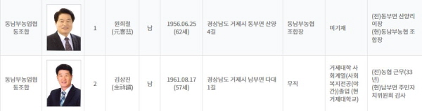 µ¿³²ºÎ³óÇù Á¶ÇÕÀå ¼±°Å´Â ±âÈ£ 1¹ø ¿øÈñö(62) Çö Á¶ÇÕÀå°ú ±âÈ£ 2¹ø ±è»óÁø(57) Àü ³óÇù Á÷¿øÀÌ ¸Â´ë°áÀ» ¹úÀδÙ.