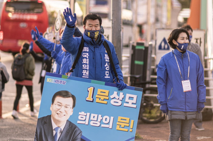 ¹®»ó¸ð ´õºÒ¾î¹ÎÁÖ´ç °ÅÁ¦½Ã ±¹È¸ÀÇ¿ø È帰¡ °ø½Ä¼±°Å¿îµ¿ ù³¯ÀÎ 2ÀÏ ´ë¿ìÁ¶¼± ¼¹®¿¡¼ Ãâ±ÙÀλç·Î ³ëµ¿ÀÚ¸¦ ¸¸³ª¸ç º»°Ý ¼±°ÅÀ¯¼¼¿¡ µé¾î°¬´Ù.