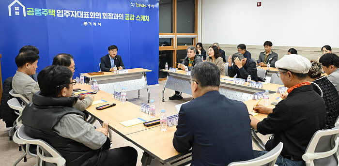°¢ °øµ¿ÁÖÅÃÀÔÁÖÀÚ´ëǥȸÀÇ È¸ÀåÀº °øµ¿ÁÖÅà ³» ½Ã¼³¹° °ü¸®, ¾ÈÀü ¹®Á¦, ±×¸®°í ÀÔÁֹεéÀÇ »ýȰ ȯ°æ °³¼± µîÀ» °ÅÁ¦½ÃÀå¿¡°Ô °ÇÀÇÇϰí ÇÔ²² ÇØ°á¹æ¾ÈÀ» ¸ð»öÇß´Ù.