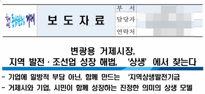 ±â±ÝÀÇ Åõ¸íÇÑ ¿î¿µ°ú °øÁ¤¼º È®º¸ ¹æ¾Èµµ ¾ð±ÞÇß´Ù. º¯ ½ÃÀåÀº ¡°»ó»ý±â±ÝÀÌ Á¶¼ºµÈ´Ù¸é ½Ã¿¡¼ ÀϹæÀûÀ¸·Î ¿î¿µÇÏ´Â °ÍÀÌ ¾Æ´Ï¶ó ³ë¡¤»ç¡¤¹Î¡¤Á¤, ½Ã¹Î ´ëÇ¥°¡ ÇÔ²² Âü¿©ÇÏ´Â º°µµ ¿î¿µ±â±¸¸¦ µÎ°í, ¿ÜºÎ°¨»ç Á¦µµ¸¦ µµÀÔÇØ ÁýÇàÀÇ Åõ¸í¼º°ú Ã¥ÀÓ¼ºÀ» ´ãº¸ÇÒ °Í¡±À̶ó°í ¼³¸íÇß´Ù.