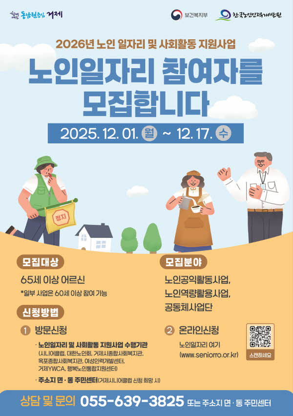 °ÅÁ¦½Ã´Â ¾î¸£½ÅµéÀÇ ¾ÈÁ¤ÀûÀ̰í Ȱ±âÂù ³ëÈÄ»ýȰÀ» Áö¿øÇϰíÀÚ 12¿ù 1ÀϺÎÅÍ 12¿ù 17ÀϱîÁö¡®26³âµµ ³ëÀÎÀÏÀÚ¸® ¹× »çȸȰµ¿ Áö¿ø»ç¾÷ Âü¿©ÀÚ¡¯¸¦ ¸ðÁýÇÑ´Ù.