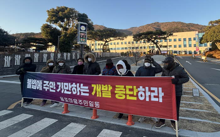 À²Æ÷¸¶À» ÁֹεéÀº ÇàÁ¤°ú »ç¾÷ÀÚ°¡ ¼ÒÅë¾øÀÌ ÀϹæÀûÀÌ°í ºÒ¹ýÀûÀ¸·Î ÃßÁøÇÏ´Â °ü±¤´ÜÁö °³¹ßÀ» º¸°í ´õ ÀÌ»ó ÂüÀ» ¼ö ¾ø¾î Áö³ 1¿ù 20ÀϺÎÅÍ È¤ÇÑ¿¡ ¸ÅÀÏ ¾ÆÄ§ ½Ãû¾Õ¿¡¼ Áýȸ¸¦ ¿°í ÀÖ´Ù.